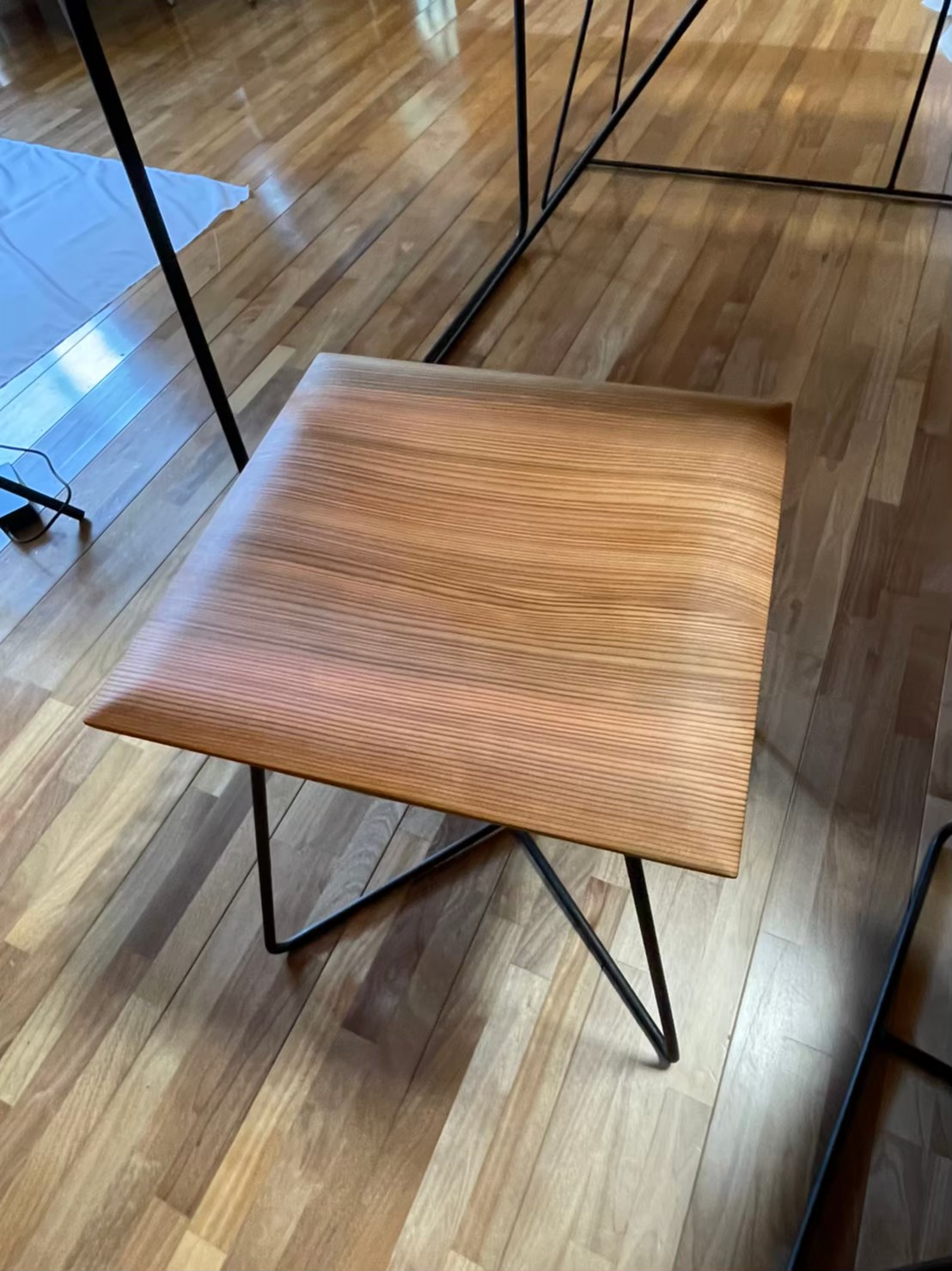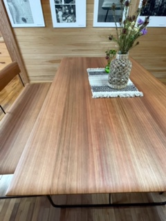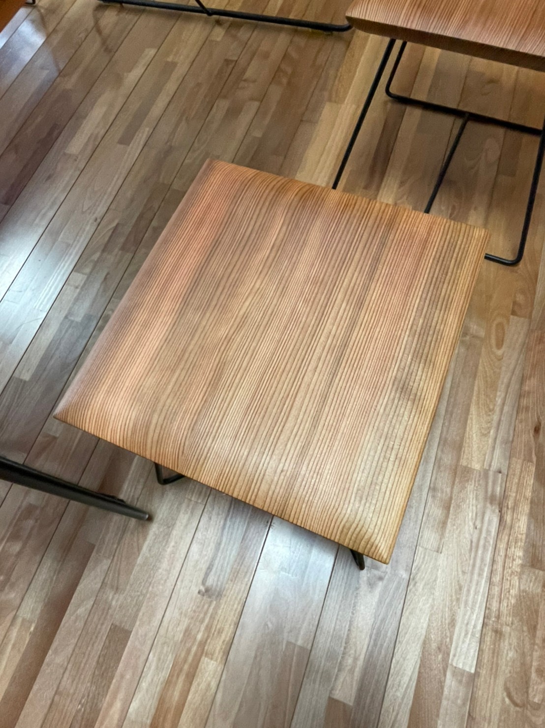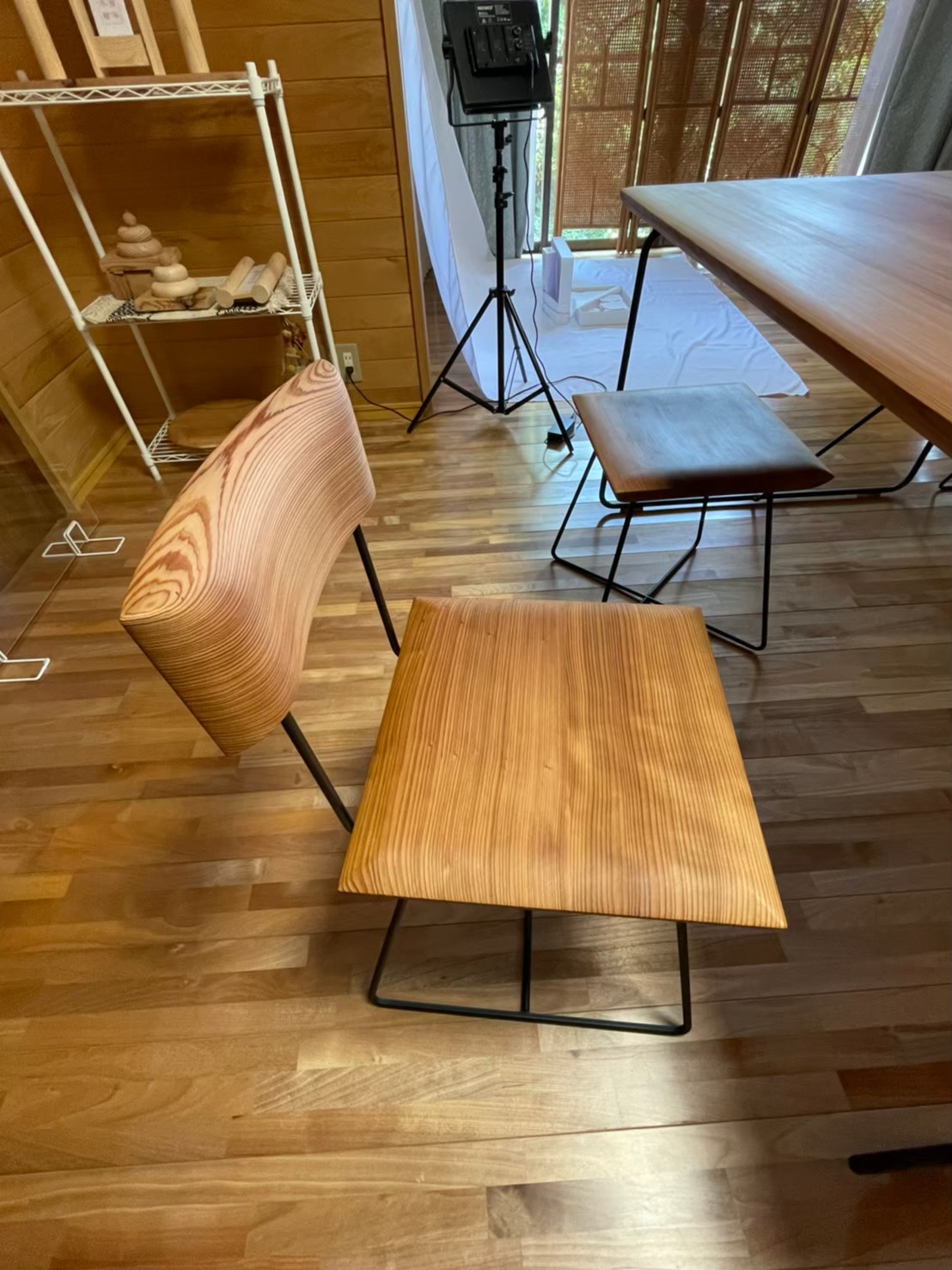 ギャラリー開設後に始めた柾目の家具のお手入れ。週1回金曜日に行っています。アマニ油を塗りこんで乾かします。